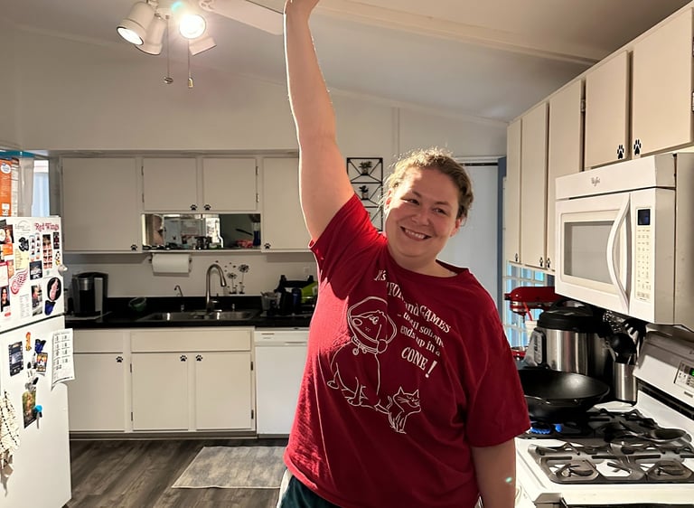 Kyla treating a battle wound after a run-in with a mandoline while shredding cabbage for dinner.