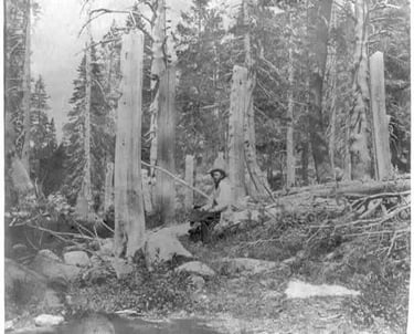 These trees were cut by members of the Donner Camp. As the Donners were already buried in the snow of the storms they were experiencing you can see the depth of the snow that they were battling.